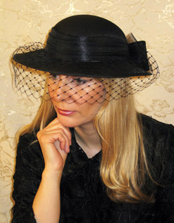Tyylikäs musta hattu kuuluu hautajaisasuun sekä naisilla että miehillä. |